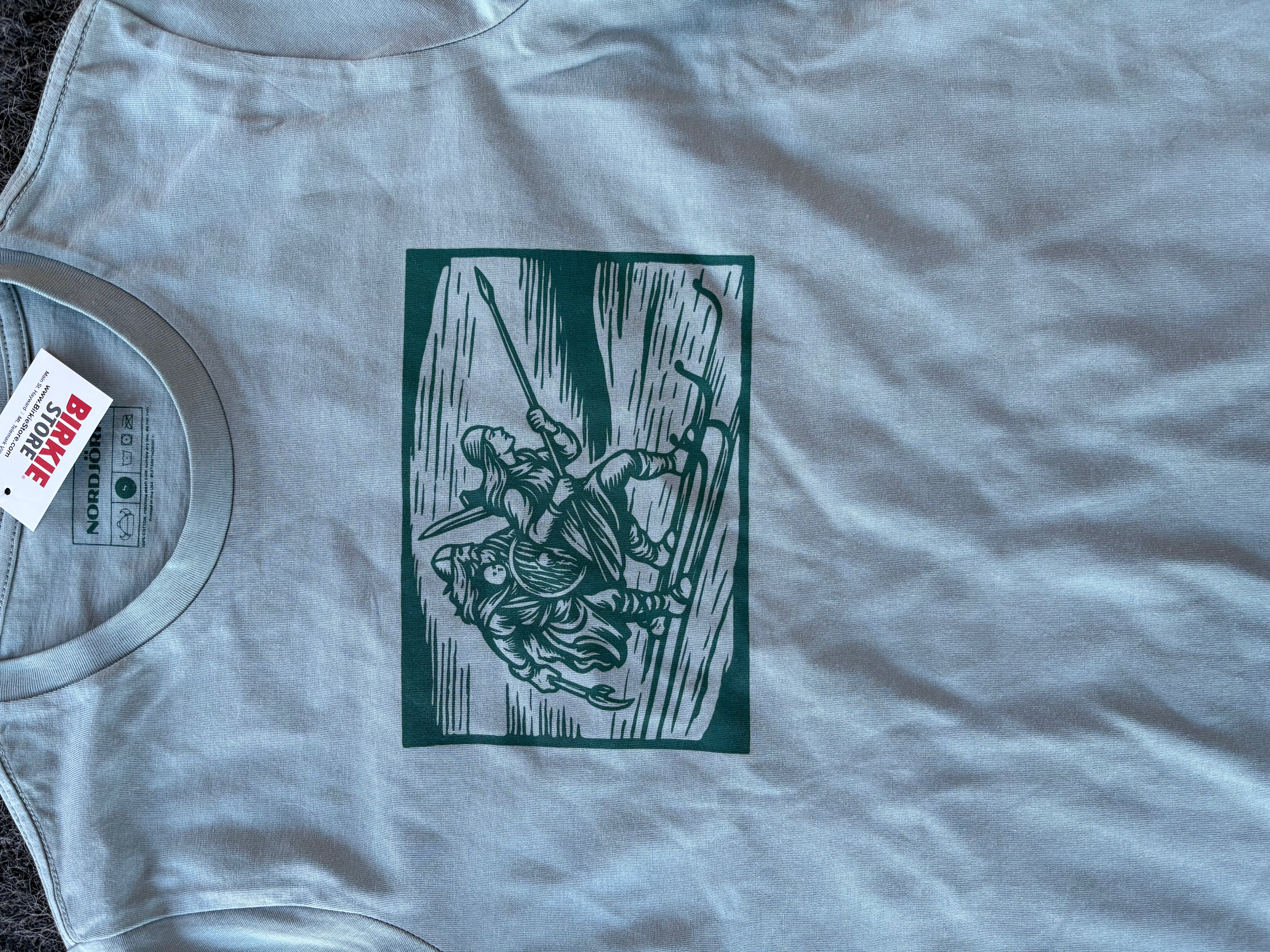 Made in collaboration with Nordjork, this tee features a special take on our iconic warriors, rendered in a raw wood-carving style.